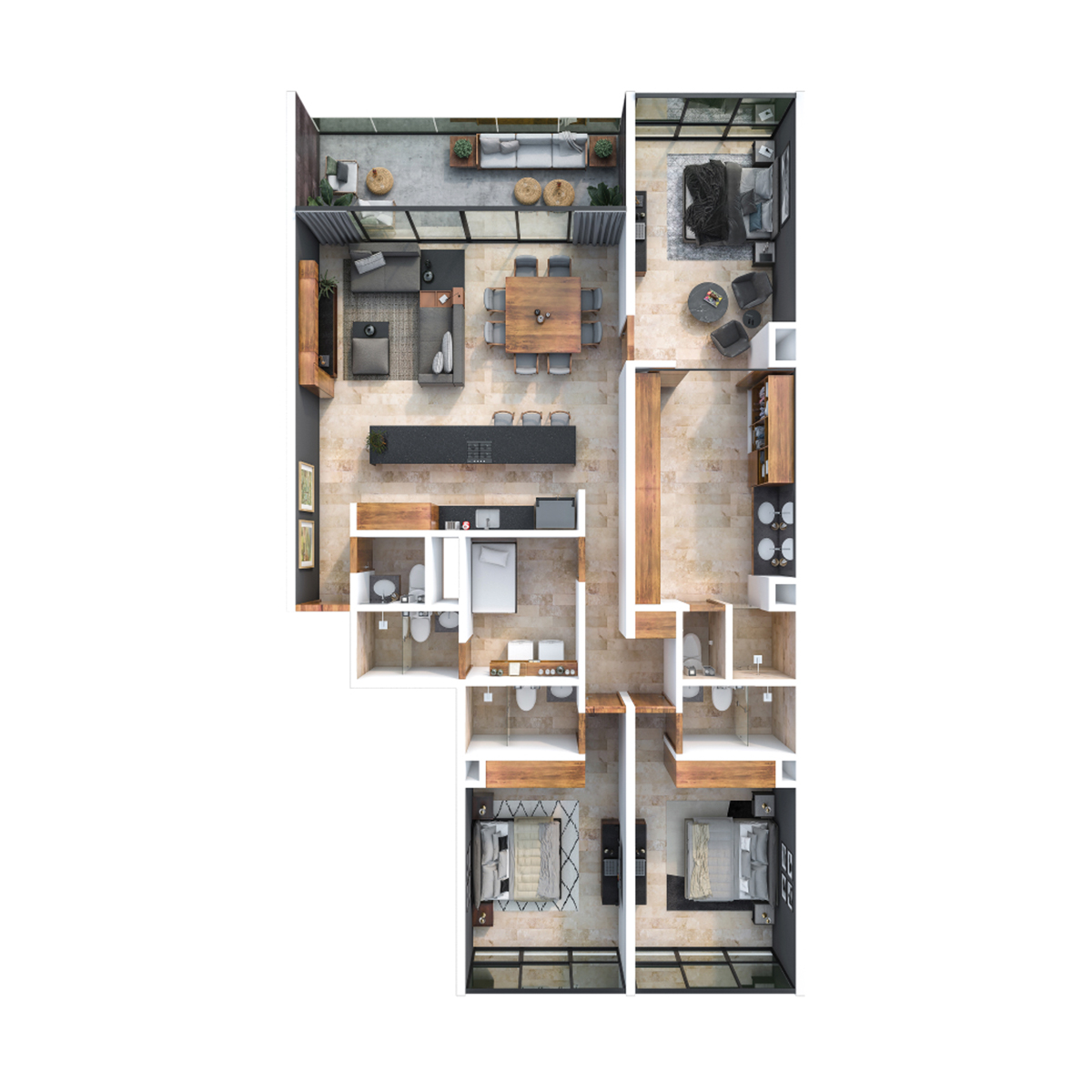 El proyecto departamental se caracteriza por su diseño moderno e innovación. Transformamos el concepto de propiedades en las alturas con nuestro skyhomes.