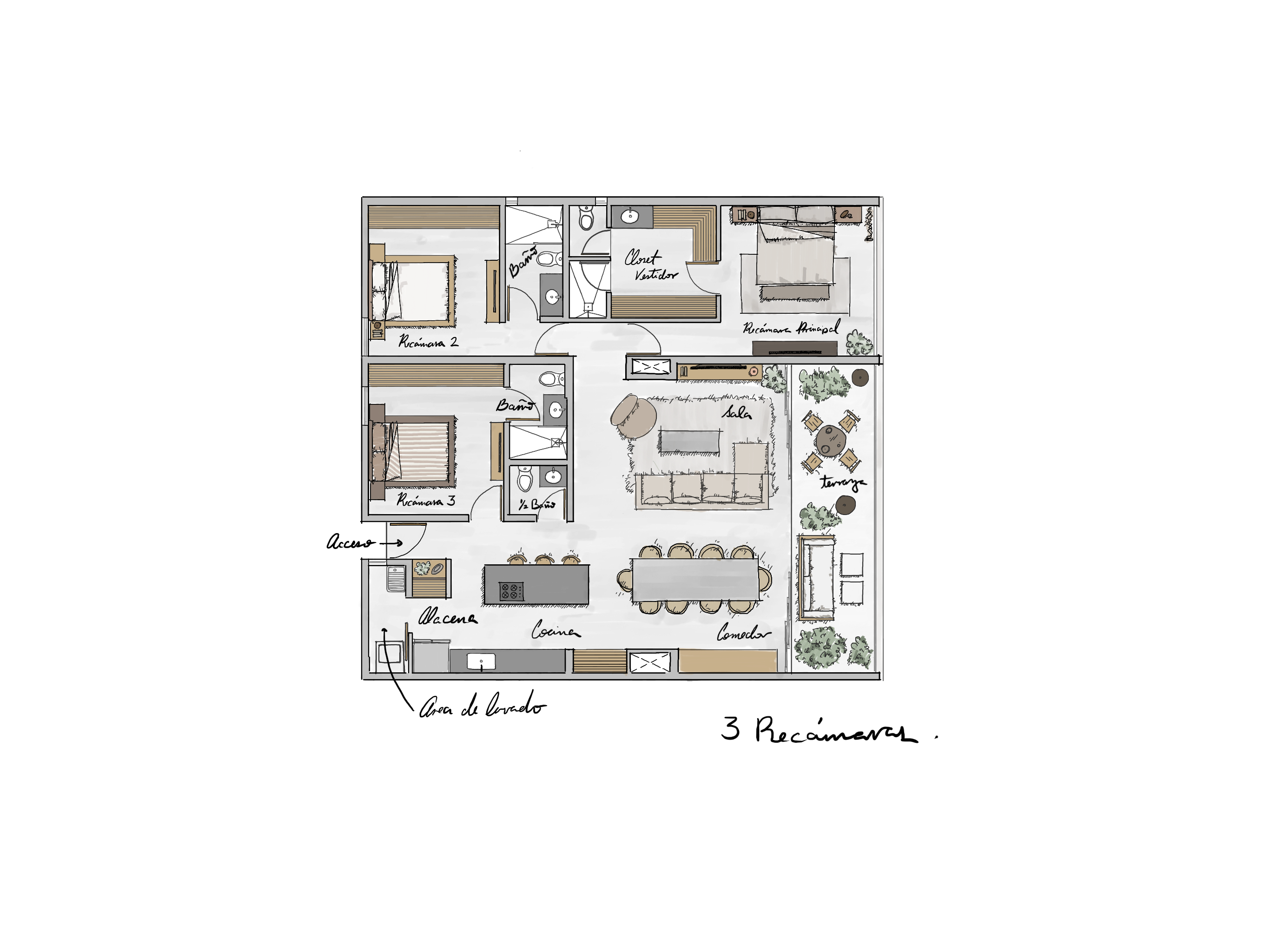 El desarrollo nace por la apreciación a las mañanas lentas y la vida en comunidad. Este íntimo desarrollo ubicado al norte de Mérida, en Avenida Temozón, cuenta con 21 amplios departamentos de 2 y 3 recámaras y penthouses.